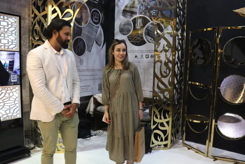In a showcase brimming with diversity and innovation, Hidayath Group demonstrated its prowess as a masterful stainless steel craftsman capable of delivering extraordinary solutions across various scales. From captivating interior decor solutions to impeccable architectural finishes, their product range encompassed a world of possibilities. Two standout creations, the SS Sculpture of Deer and the SS Entrance Tree, exemplified Hidayath’s boundless imagination, and meticulous craftsmanship, and showcased the breathtaking SS Mirror Finish and Laser cutting techniques that brought an ethereal allure to their designs.